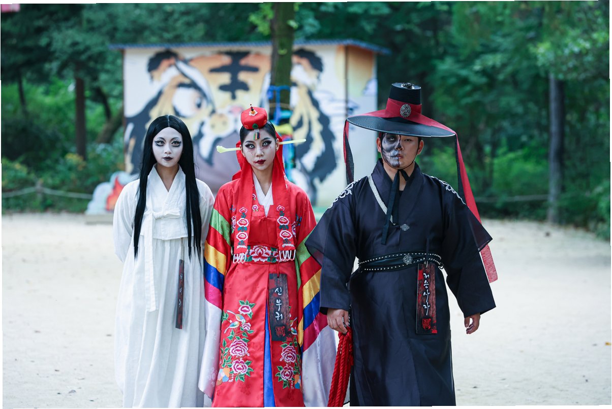 한국민속촌의 가을 대표 콘텐츠인 ‘귀신사바 귀신놀이’는 잃어버린 물건을 찾아주는 귀신들의 이야기를 담고 있습니다. 조선 시대 귀신들이 등장하여 상황극을 펼치는 이 놀이는, 서양식 유령과는 차별화된 한국적 정서로 관람객들의 몰입도를 높였습니다. 특히, 핵심 캐릭터인 K귀신들은 능청스러운 행동과 독특한 비주얼로 아이들은 물론 어른들까지 사로잡으며, 한국민속촌의 가을을 더욱 풍성하게 만들었습니다.