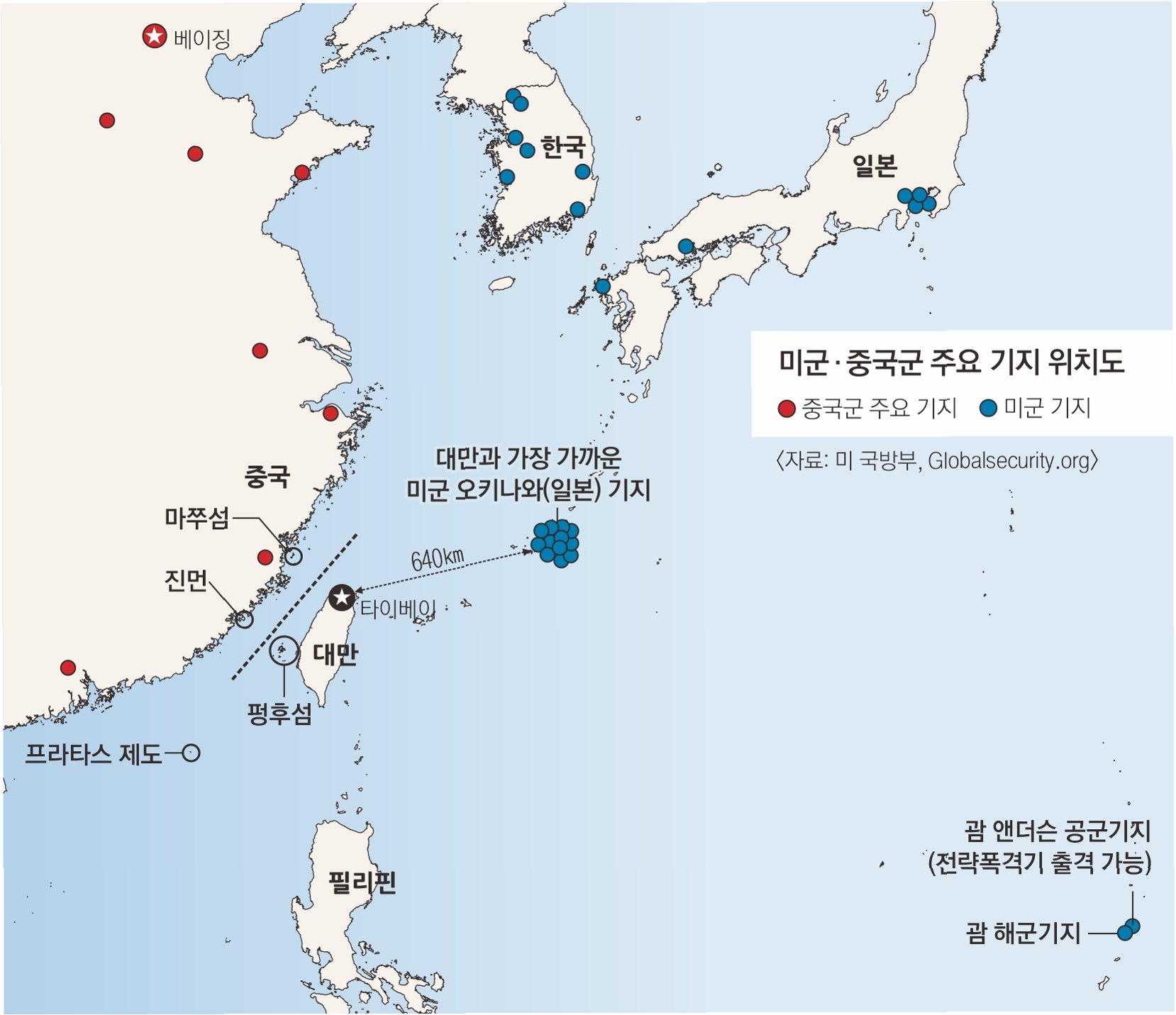 핵심 요약: 대만 유사시 중국의 아시아 미군 기지 공격 가능성과 그 영향