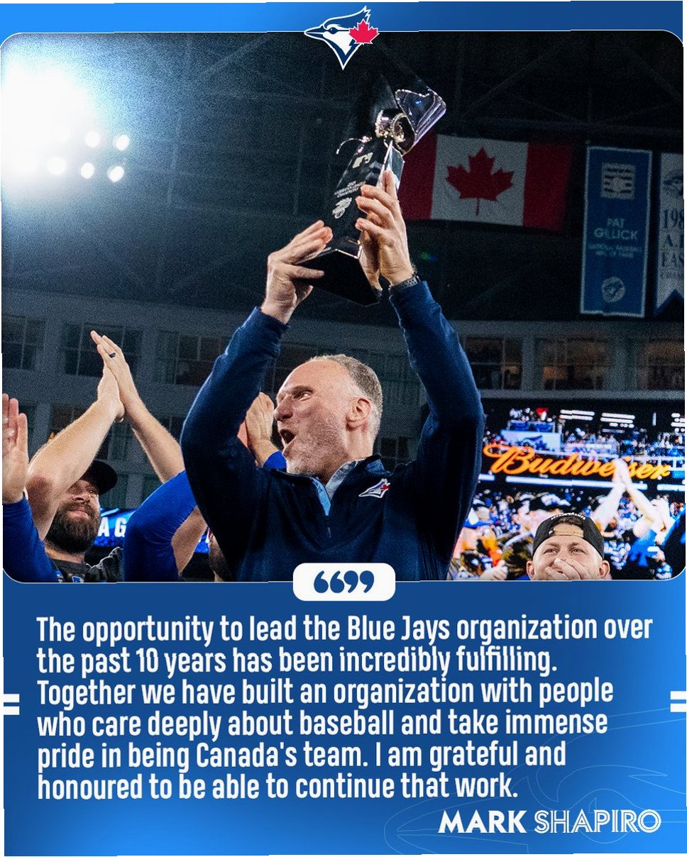 토론토 블루제이스를 32년 만에 월드시리즈로 이끈 '위대한 경영인' 마크 샤파이로가 팀과 5년 연장 계약을 맺었습니다. 이는 토론토 구단이 샤파이로 사장의 리더십을 높이 평가하고, 그의 능력을 통해 앞으로도 성공적인 미래를 함께하겠다는 의지를 보여주는 것입니다.