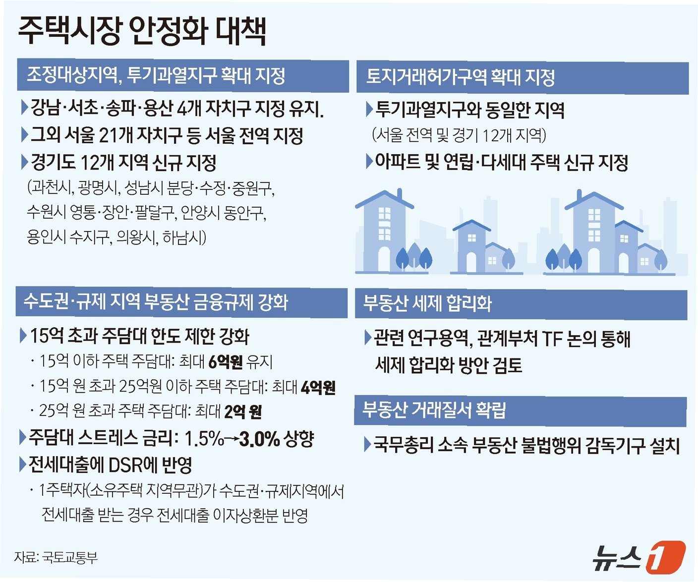 서울 전역과 경기도 12개 지역의 규제 지역 및 토지거래허가구역 지정, 대출 규제 강화, 실거주 의무 부과, 전세 대출 DSR 규제 적용, 그리고 부동산 범죄 대응 강화 및 세제 개편 추진. 정부는 이번 조치를 통해 부동산 시장의 안정을 도모하고, 실수요자를 보호하며, 투기 과열을 억제하고자 합니다.