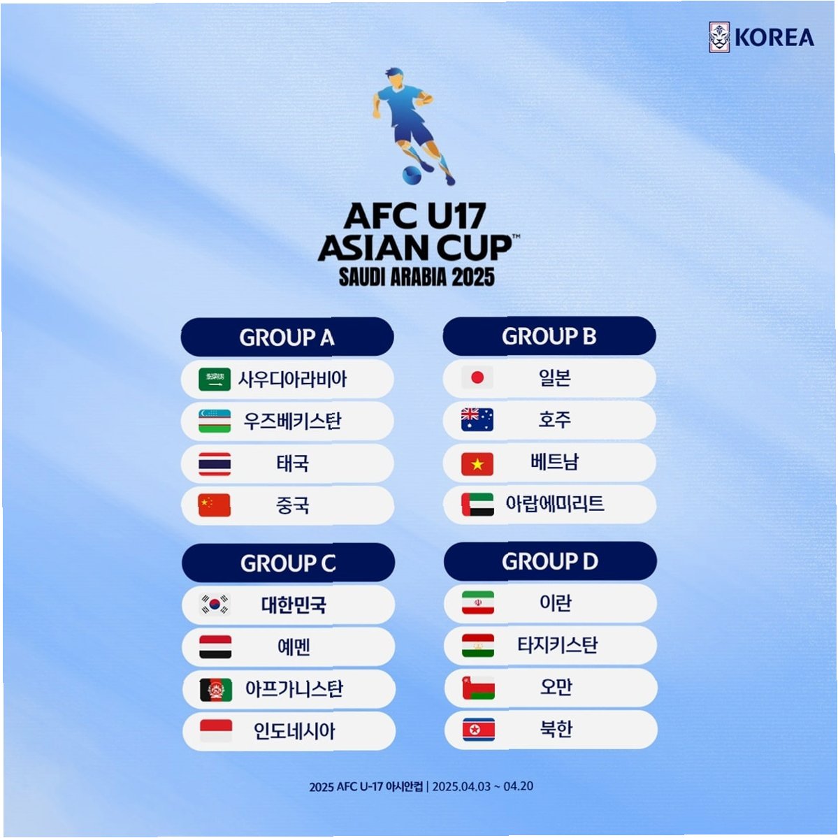 한국 U-17, 무난한 조 편성… 24년 만의 정상 탈환 노린다
