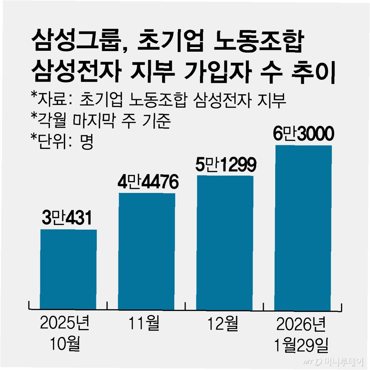 초기업노동조합 삼성전자 지부(초기업노조)는 자체 집계 결과 조합원 수가 6만 4천 명을 넘어 과반 기준(약 6만 2500명)을 돌파했다고 회사에 공식 통보했습니다. 공정성 확보를 위해 제3자 검증 절차를 제안했으며, 오는 2월 3일까지 회신을 요구했습니다. 향후 노동청 입회 하에 조합원 명부 및 납부 내역을 토대로 정확한 인원수 확인 절차가 진행될 전망입니다.
