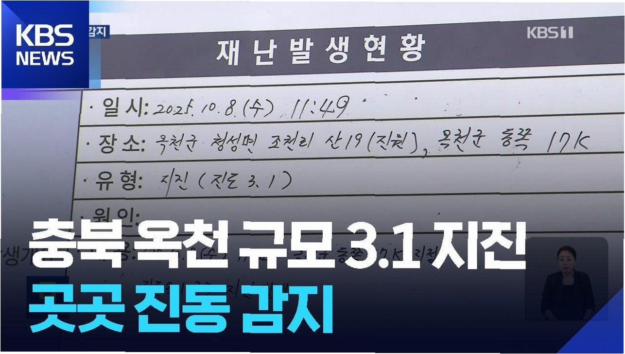 충북 옥천에서 규모 3.1의 지진이 발생하여, 연휴를 맞아 가족과 함께 시간을 보내던 주민들이 불안에 휩싸였습니다. 오전 11시 49분에 발생한 지진은 깊이 9km 지점에서 발생하여 충북 지역의 많은 사람들이 진동을 감지했습니다. 다행히 큰 피해는 보고되지 않았지만, 갑작스러운 지진으로 인해 주민들은 놀란 가슴을 쓸어내려야 했습니다.