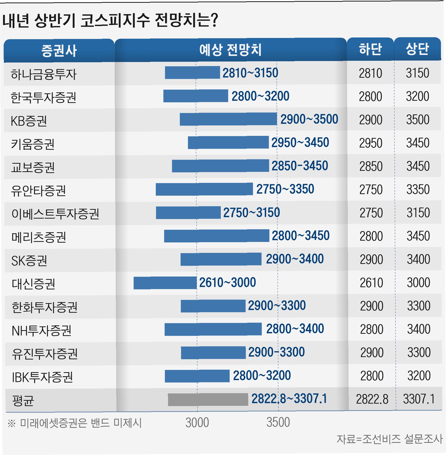 증권사들은 3000선을 기준으로 엇갈린 전망을 내놓았습니다. SK증권, 신한투자증권, 키움증권 등 6곳은 3000선 이상을, 삼성증권, 신영증권, NH투자증권 등 10곳은 3000선을 넘지 못할 것으로 예상했습니다. iM증권은 2750선으로 가장 보수적인 전망을 제시했습니다. 이러한 예측의 차이는 증권사들이 시장을 바라보는 다양한 시각과 분석 방법론의 차이를 반영합니다. 하지만, 결과적으로 모든 증권사의 예측은 빗나갔습니다. 이는 시장 예측의 어려움을 보여주는 단적인 예이며, 투자자들이 단일 예측에 의존하기보다는 다양한 정보를 종합적으로 고려해야 함을 시사합니다.