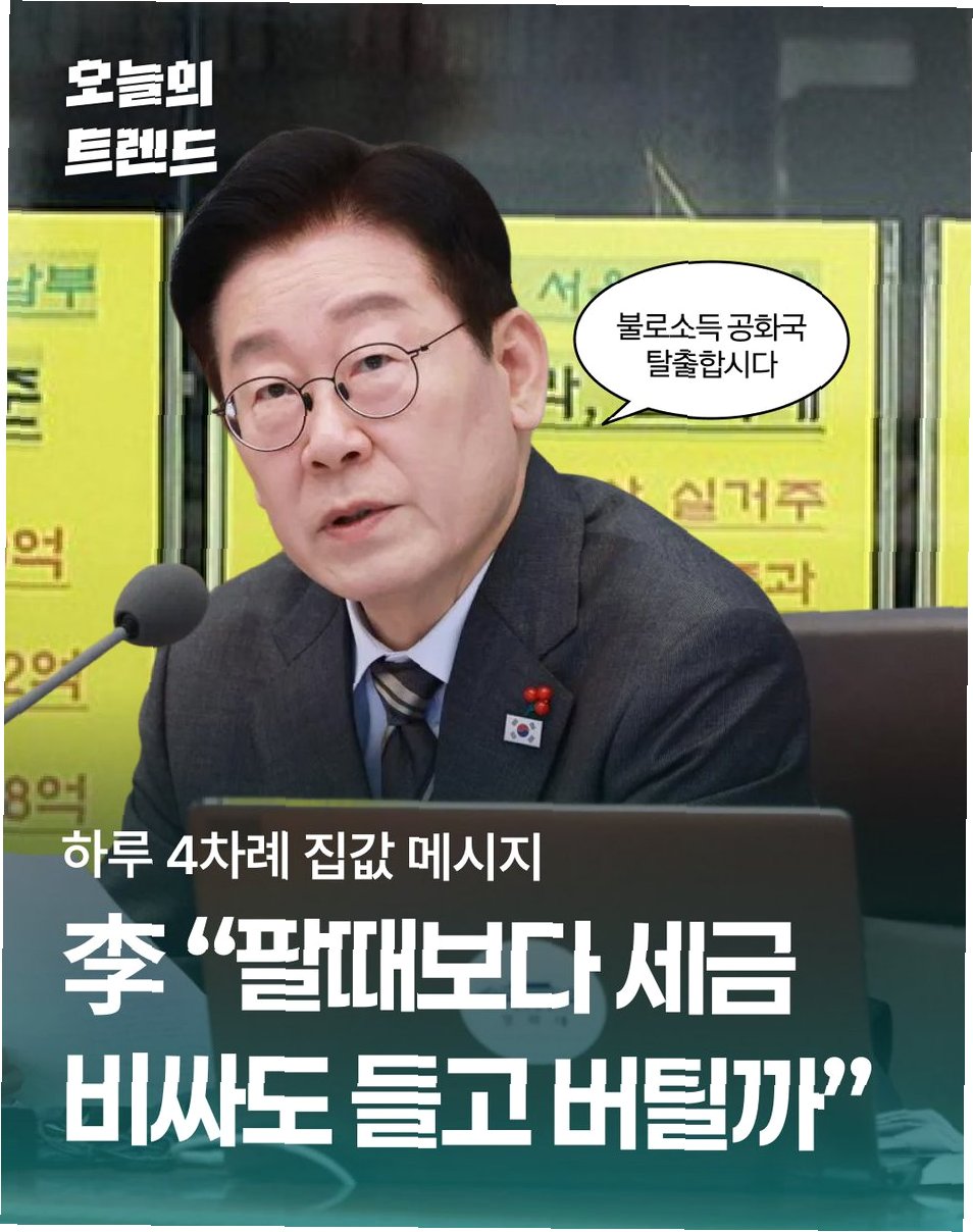 이 대통령은 자신의 엑스(X) 계정을 통해 적극적으로 대중과 소통하고 있습니다. '집 주인들 백기 들었나, 서울 아파트값 급브레이크'라는 기사를 공유하며 부동산 시장 안정화 의지를 드러냈고, '종묘 앞 고층 개발은 안 되고, 태릉 옆 주택 개발은 되나'라는 기사를 링크하며 문화유산 보호와 주택 공급 사이의 이중적 태도를 꼬집었습니다. 이는 '거울 화법'을 활용하여 논점을 명확히 하는 효과적인 소통 방식입니다.