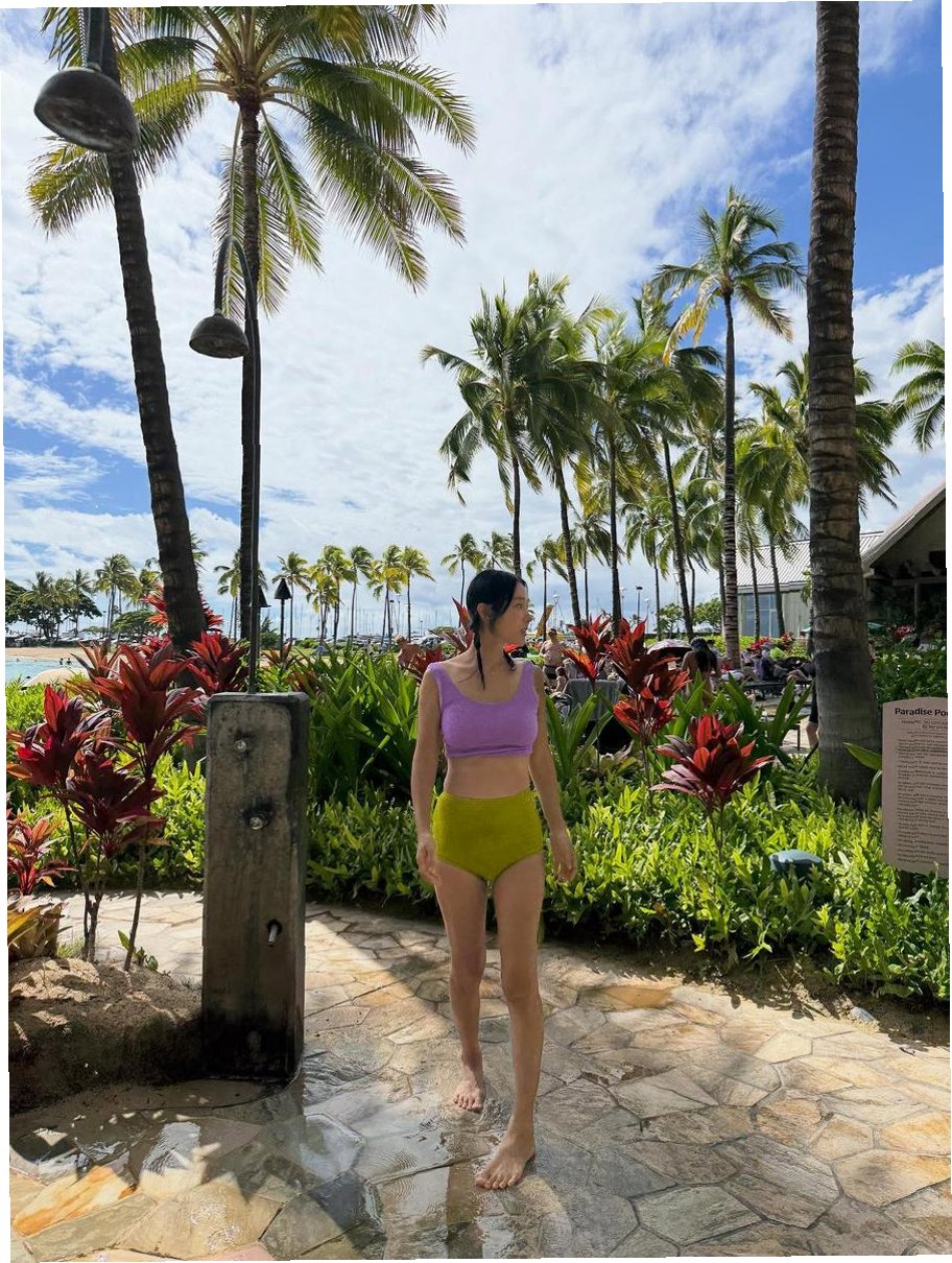 수영복 자태, 하와이 해변을 빛내다