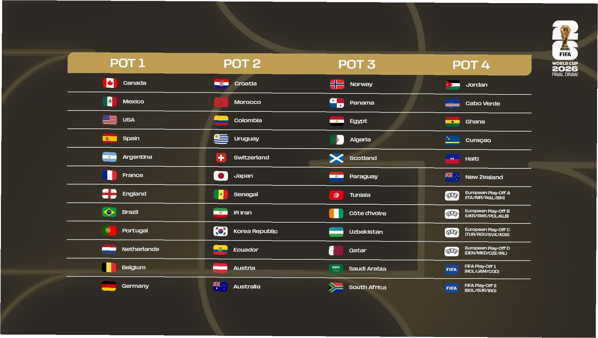 2026 북중미 월드컵 조 추첨 결과, 희비가 엇갈리다