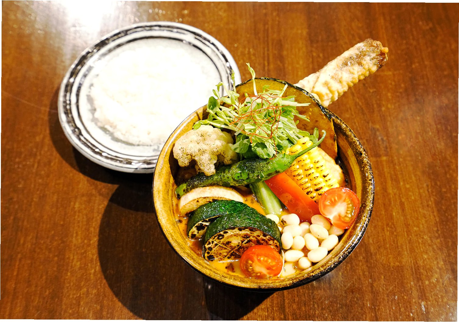 A.시판 카레를 사용하지 않고, 셰프가 직접 배합한 향신료로 만든 '스파이스 카레'를 맛볼 수 있다는 점입니다. 매일 먹어도 질리지 않는 맛을 추구하며, 계절에 맞는 신선한 재료를 사용하여 다채로운 메뉴를 선보입니다.