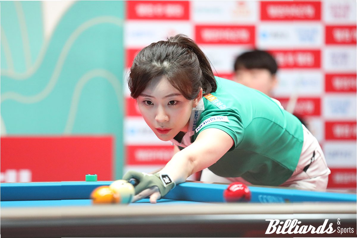 2022-2023시즌 프로 데뷔 이후 매 시즌 눈부신 성장세를 보여온 정수빈 선수는 빼어난 외모와 실력으로 LPBA의 차세대 스타로 주목받고 있습니다. 특히 이번 대회에서는 64강 전어람 선수와의 경기에서 애버리지 1.389를 기록하는 등 예사롭지 않은 큐 감각을 뽐냈습니다. 백미는 단연 8강전이었습니다. '당구 여제' 김가영(하나카드) 선수를 상대로 3-0 완승을 거두며 LPBA 세대교체의 신호탄을 쏘아 올렸습니다.