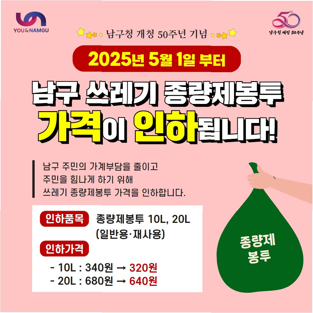 | 종량제봉투 가격 인상 없다! 부산시, 6개월 이상 비축 물량으로 시민 불안 해소 나서 (0) | 2026.03.26 |