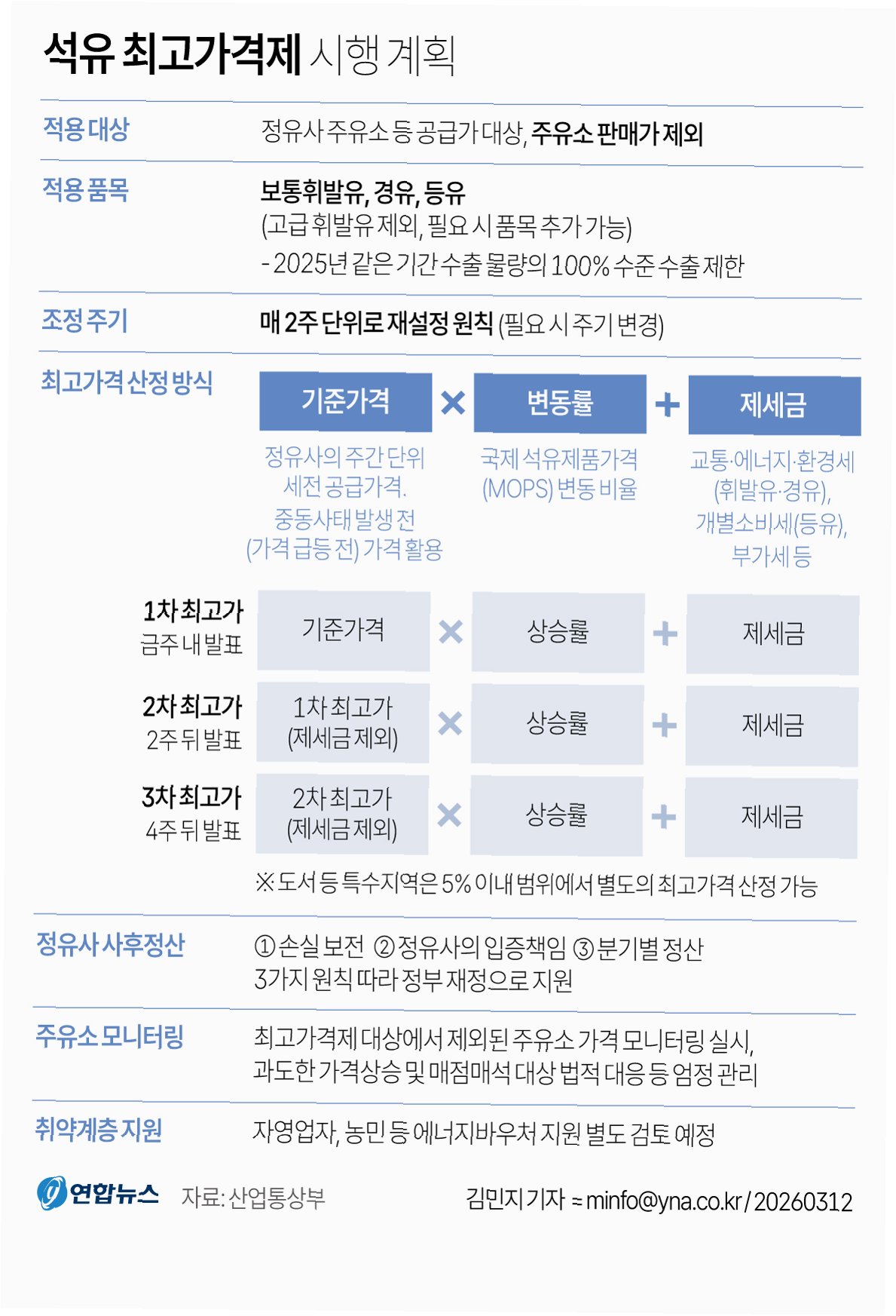 정유사가 주유소에 공급하는 2차 석유 최고가격이 ℓ당 휘발유 1,934원, 경유 1,923원, 등유 1,530원으로 인상됩니다. 이는 2주 전 1차 최고 가격 대비 유종별로 모두 210원씩 오른 수치입니다. 정부는 국제유가 상승률과 국민 생활에 미치는 영향을 종합적으로 고려하여 이번 최고가격을 지정했다고 밝혔습니다. 유류세 추가 인하분도 반영되었습니다.