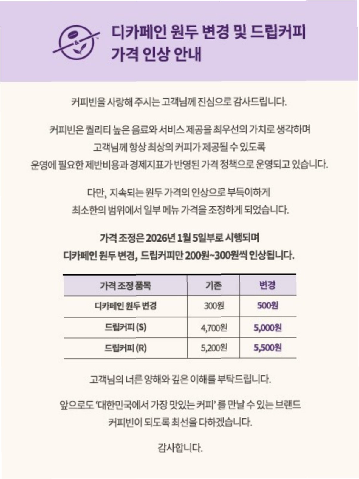 Q.커피값 인상의 가장 큰 원인은 무엇인가요?