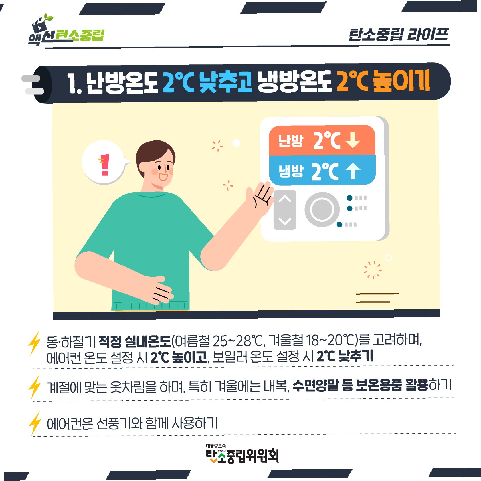 정부의 권고: 20도로의 실내 온도 조절