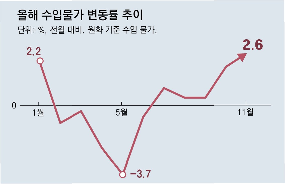 최근 원/달러 환율이 가파르게 상승하면서 수입 물가에 비상이 걸렸습니다. 한국은행이 발표한 11월 수출입물가지수에 따르면, 수입 물가가 19개월 만에 최대 폭으로 증가하며 우리 경제에 적신호가 켜졌습니다. 이는 수입 물가가 통상 1~3개월의 시차를 두고 소비자물가에 영향을 미치는 점을 고려할 때, 앞으로 물가 상승 압력으로 작용할 가능성이 높다는 것을 의미합니다.