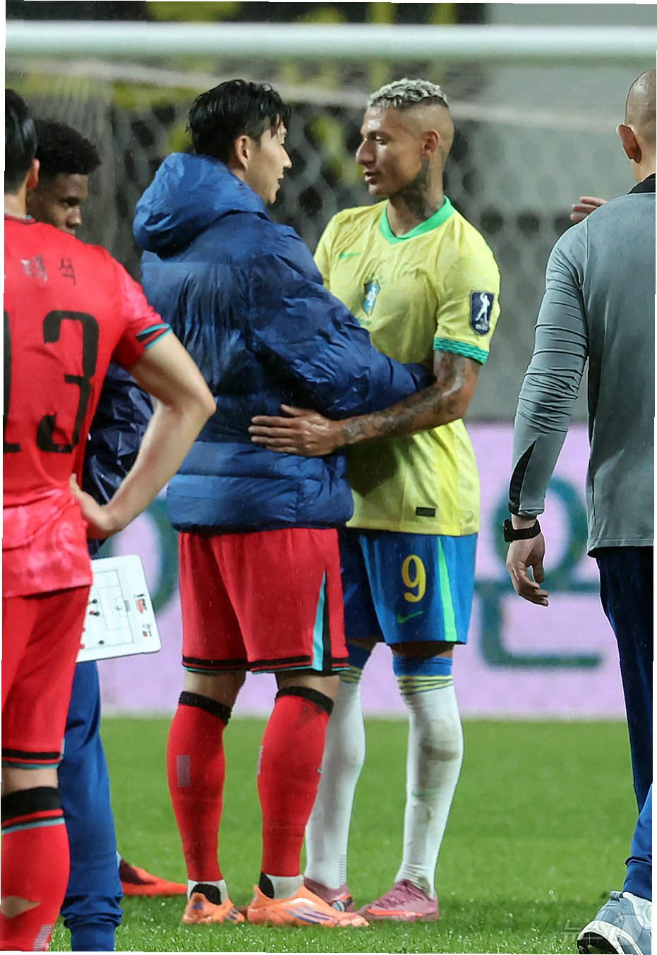 손흥민은 선발 출전했지만, 브라질의 수비에 막혀 후반 28분 교체되었고, 히샬리송은 후반 34분 교체 투입되었습니다. 경기 후 히샬리송은 손흥민을 찾아 유니폼 교환을 시도했지만, 0-5 대패라는 결과에 손흥민은 히샬리송을 안아주는 것으로 대신했습니다. 히샬리송은 경기 후 인터뷰에서 유니폼 교환을 하지 못한 아쉬움을 솔직하게 표현했습니다.