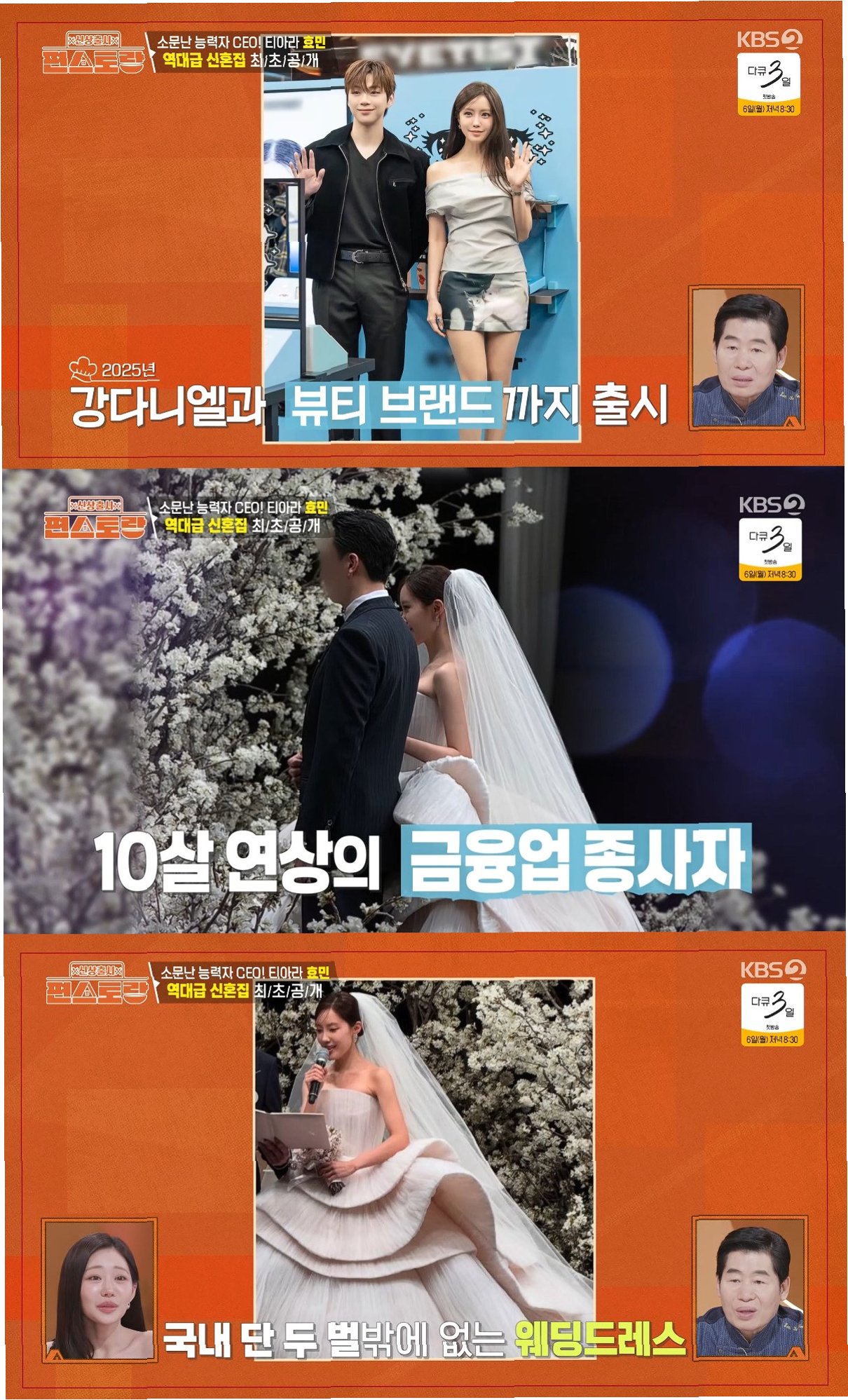 방송에서 효민은 절친 노희영을 신혼집에 초대해 오렌지빛 한 상을 차려냈다. 요리계의 큰 손이자 마케팅 전문가인 노희영은 효민의 요리 실력과 사업가로서의 면모를 칭찬하며, 결혼 상대에 대한 깊은 관심을 보였다. 효민은 어려운 일식조리기능사 자격증 취득, 성공적인 브랜드 론칭 등 다방면에서 뛰어난 재능을 보여왔다. 노희영은 효민의 결혼 상대에 대해 '학벌, 능력, 외모, 인성까지 완벽하다'고 극찬하며 효민의 안목을 높이 샀다.