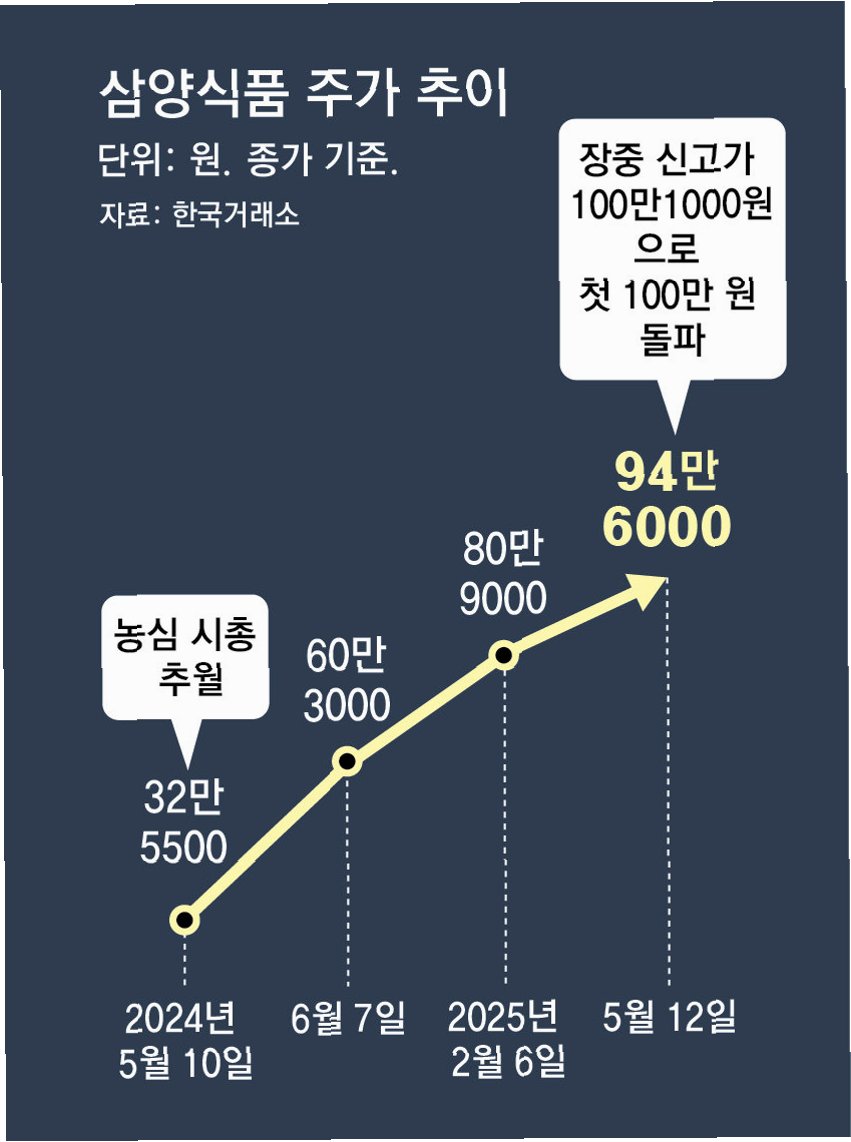 삼양식품 주가, 한 달간 7% 하락…최고가 대비 30% 조정