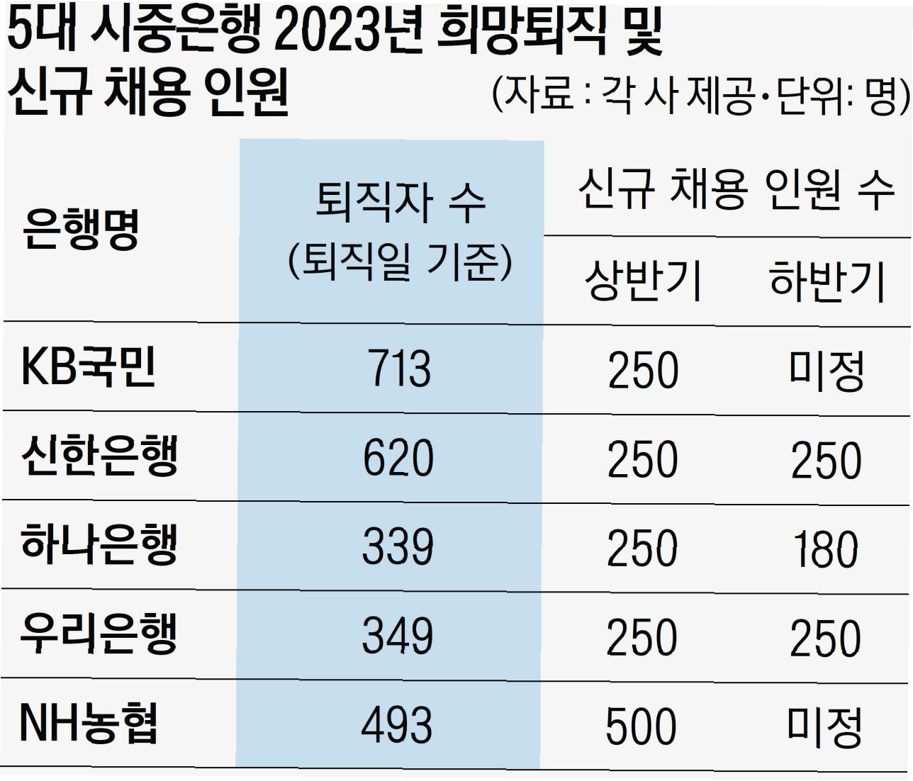 신한·농협은행 퇴직자 증가, 국민·우리·하나은행은 소폭 감소