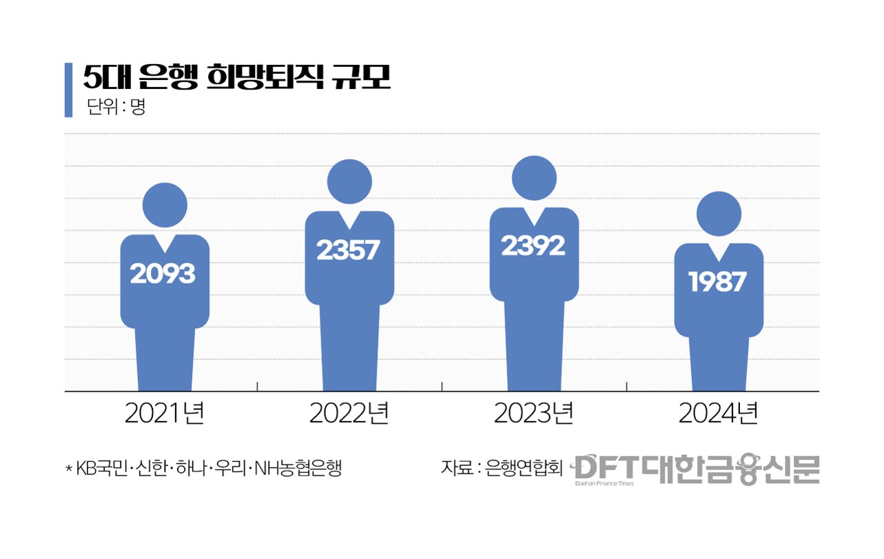 최근 연말과 연초, 국내 5대 시중은행에서 약 2400명의 은행원이 희망퇴직을 통해 일터를 떠났습니다. 이는 비대면 금융 확산과 디지털 전환 가속화로 인한 조직 슬림화 추세 속에서, 퇴직 조건이 더 나빠지기 전에 새로운 도전을 준비하려는 은행원들의 결정이 맞물린 결과로 분석됩니다. KB국민, 신한, 하나, 우리, NH농협은행 등 5대 은행에서 작년 말부터 올해 초까지 희망퇴직을 신청한 인원은 총 2364명으로, 작년 동기(2324명)와 유사한 수준입니다.