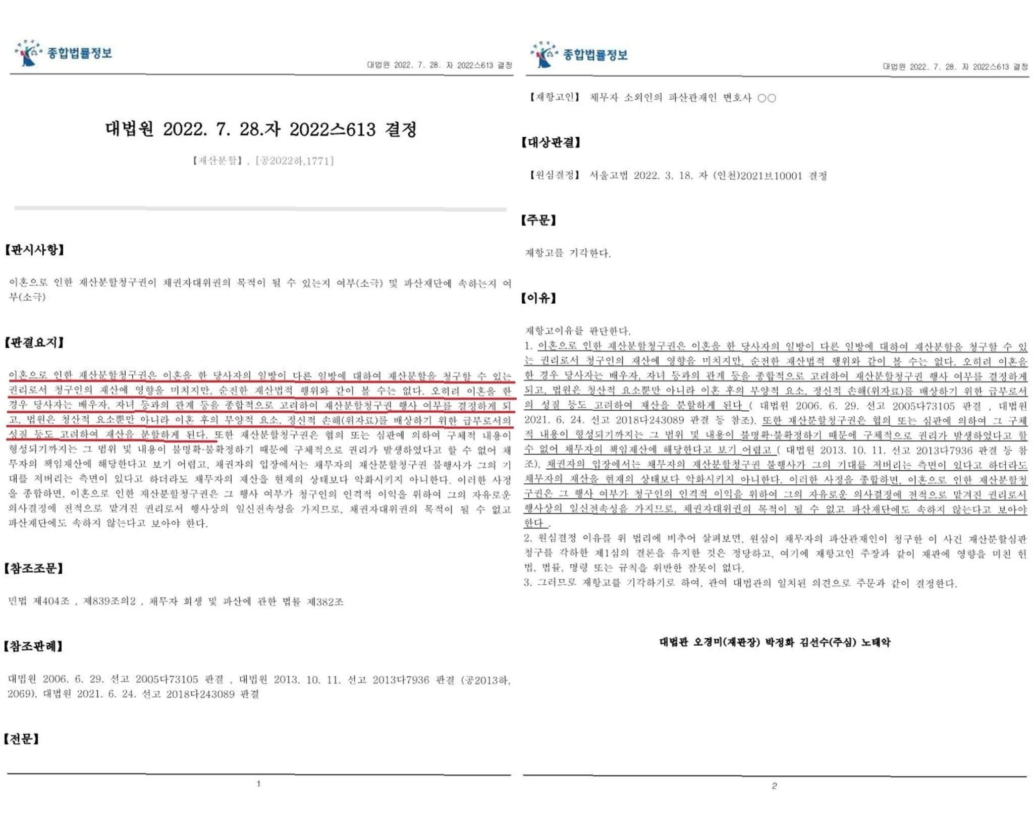 대법원의 판결: 재산분할과 부부의 협력