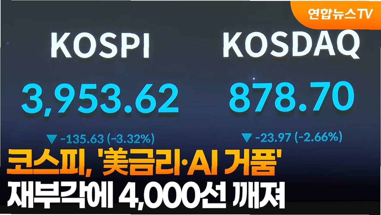 미국 뉴욕 증시의 하락 여파로 국내 증시에도 찬바람이 불었습니다. '인공지능 열풍'에 대한 거품 논란이 제기되면서 코스피는 장중 2.5% 급락, 3,854포인트까지 밀리는 등 롤러코스터 장세를 보였습니다. 외국인 투자자들의 매도세가 1조 원을 넘었지만, 개인 투자자와 기관의 '사자' 매수세에 힘입어 소폭 하락한 3,929.51로 장을 마감했습니다. 코스닥 역시 하락세를 면치 못하며 871.32로 거래를 마쳤습니다. 반도체 대장주인 삼성전자와 SK하이닉스도 1%대 하락을 기록하며 투자 심리가 위축된 모습을 보였습니다.