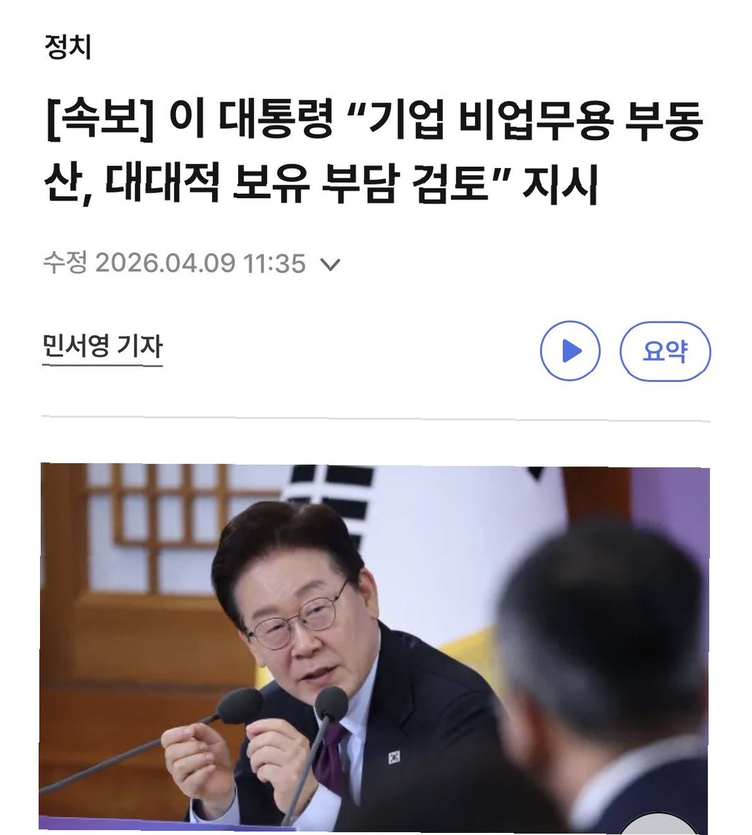 이재명 대통령은 부동산 투기를 근절하고 대한민국 산업 경제 체질을 강화하기 위해 기업이 보유한 비업무용 부동산에 대한 '대대적인 보유 부담'을 검토하라고 지시했습니다. 이는 더 이상 부동산 투기로 이익을 얻을 수 없도록 강력한 정책을 추진하겠다는 의지를 보여줍니다.