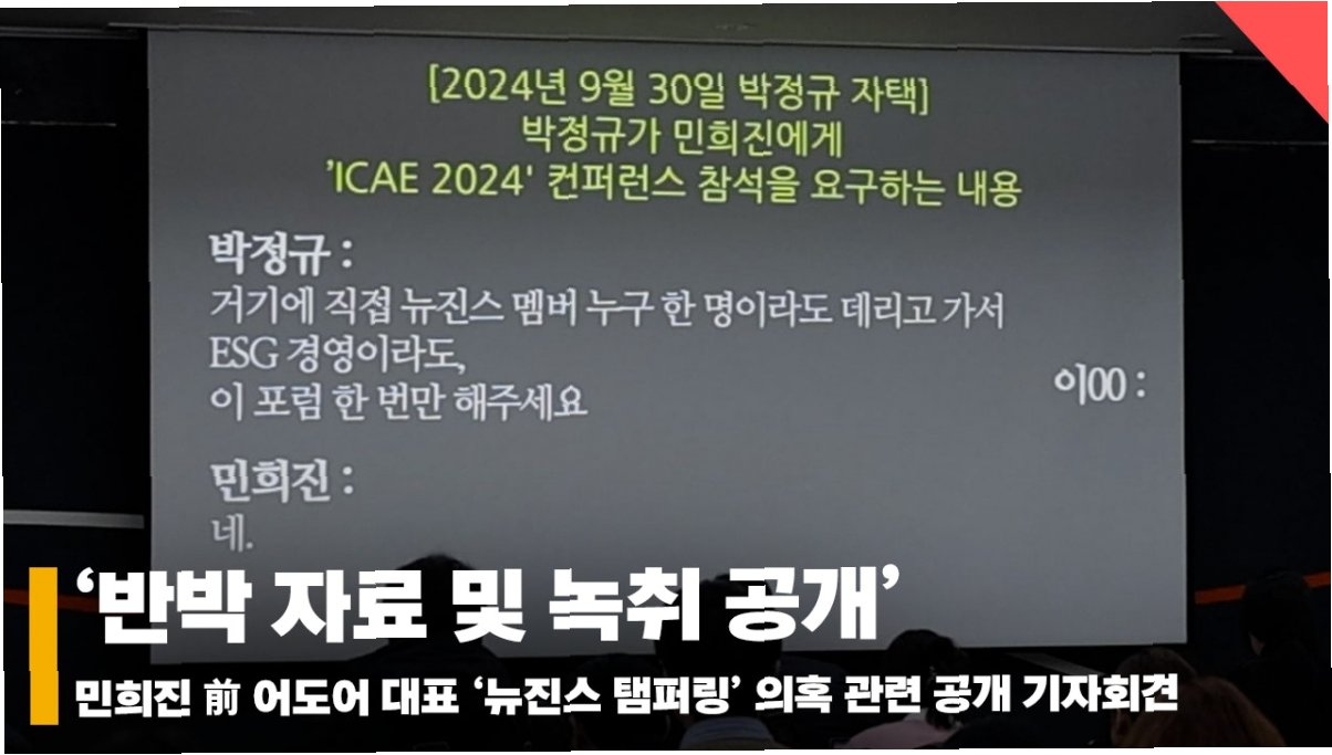 민희진 전 어도어 대표 측은 최근 불거진 '뉴진스 탬퍼링 의혹'에 대해 적극적으로 반박하며, 해당 의혹의 실체는 뉴진스 멤버 한 명의 가족과 특정 기업인이 연루된 '대국민 사기극'이라고 주장했습니다. 법률대리인인 법무법인 지암 김선웅 변호사는 기자회견을 통해 이 같은 입장을 밝혔습니다. 이는 어도어의 손해배상소송 및 뉴진스 멤버 일부에 대한 계약 해지 소송과 관련하여 제기된 의혹에 대한 진실을 알리기 위함입니다.