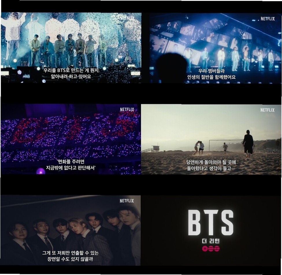 그룹 방탄소년단(BTS)의 넷플릭스 장편 다큐멘터리 ‘BTS: 더 리턴’이 공개를 앞두고 있습니다. 오랜 기다림 끝에 다시 뭉친 멤버들이 음악을 완성해가는 컴백 여정을 담은 이 작품은, 2013년 데뷔 이후 전무후무한 글로벌 인기를 누리며 역사를 써 내려온 방탄소년단의 지난 시간을 돌아보고 아티스트로서 다음 챕터를 준비하는 과정을 조명합니다. 포스터와 함께 공개된 트레일러는 바닷가에 나란히 앉아 뒷모습을 보이는 멤버들의 평온한 모습으로 시작하며 팬들에게 반가운 인사를 건넵니다.