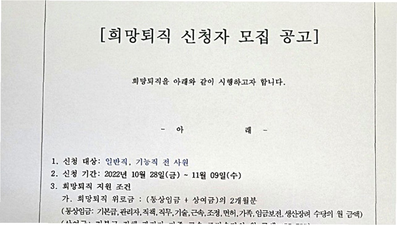 희망퇴직 조건 및 규모