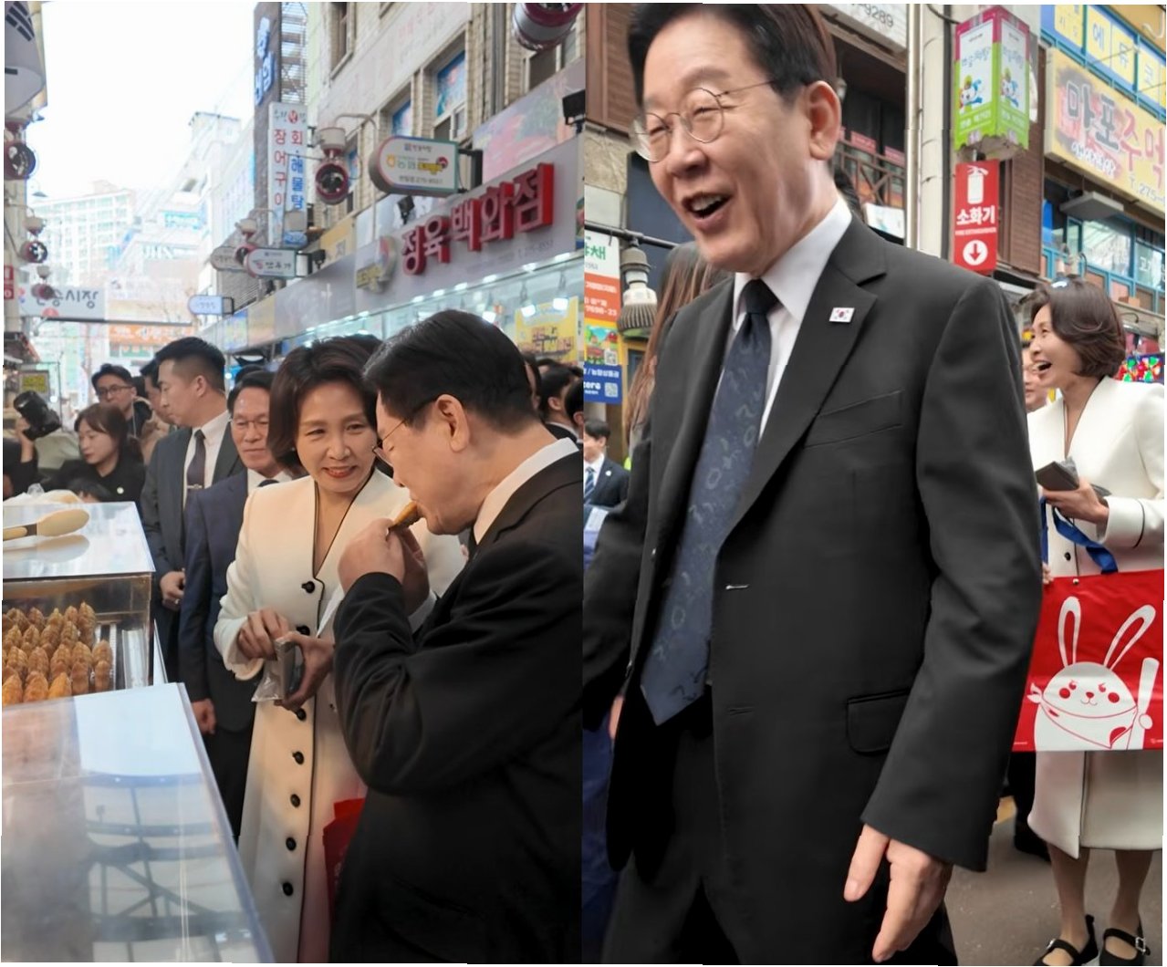 대통령 부부는 상인들과 주민들의 환호 속에서 일일이 악수와 하이파이브를 나누며 인사를 건넸습니다. 아이들에게는 허리를 숙여 눈을 맞추는 다정한 모습도 보였습니다. 딸기, 토마토 등 농산물과 화장품 등을 온누리상품권과 현금으로 구입하며 물가 동향을 살폈고, 붕어빵과 떡볶이를 맛보며 현장의 활기를 더했습니다.