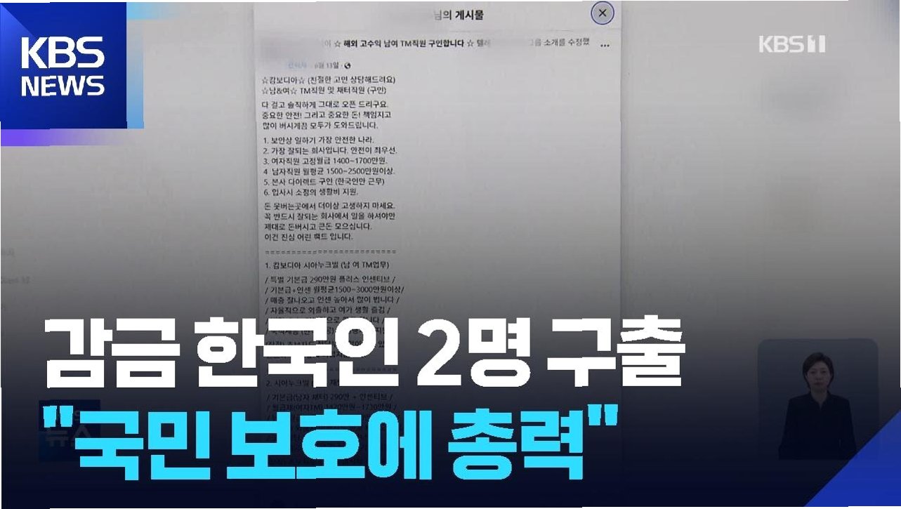 작성자는 평균 월급이 1천500만∼3천만 원에 달하고, 지난달 한 직원은 월급 4천500만 원을 받았다며 "벌 수 있을 때 빠르게 벌고 내 인생을 되찾아야 한다"고 홍보했습니다. 잇따른 한국인 대상 범죄로 인한 불안감을 의식한 듯 작성자는 "감금·폭행 같은 말도 안 되는 일은 없고 쓸데없이 그런 의미 없는 짓을 하지도 않는다"며 "안전 걱정할 필요가 없을 정도로 회사 운영진들은 오직 같이 일해서 서로 돈 많이 벌자는 '윈윈' 마인드뿐"이라고 강조했습니다.