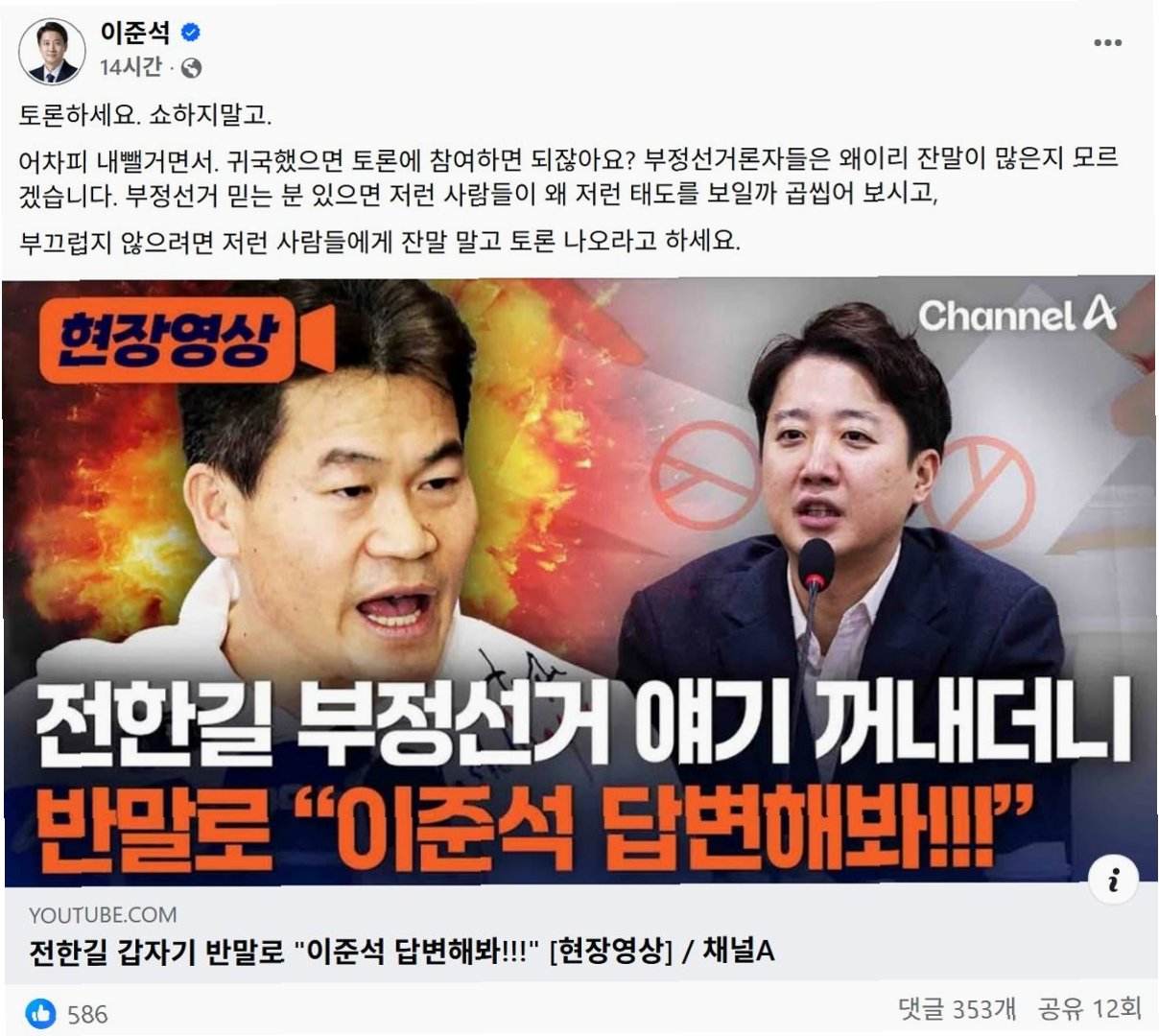 Q.이준석 대표가 전한길 씨와의 토론에서 강조하고 싶은 부분은 무엇인가요?