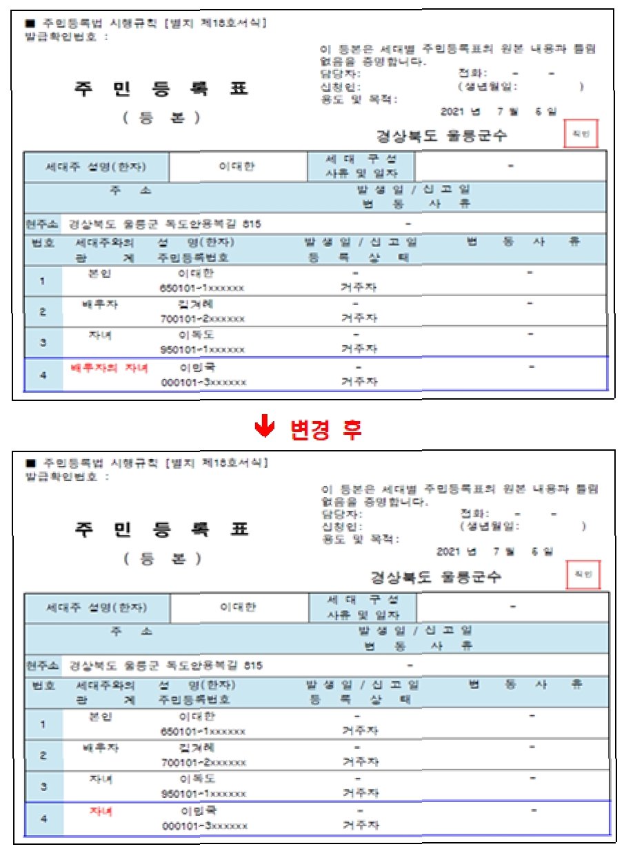 주민등록등·초본, '세대원'으로 통일…재혼가정 보호 강화