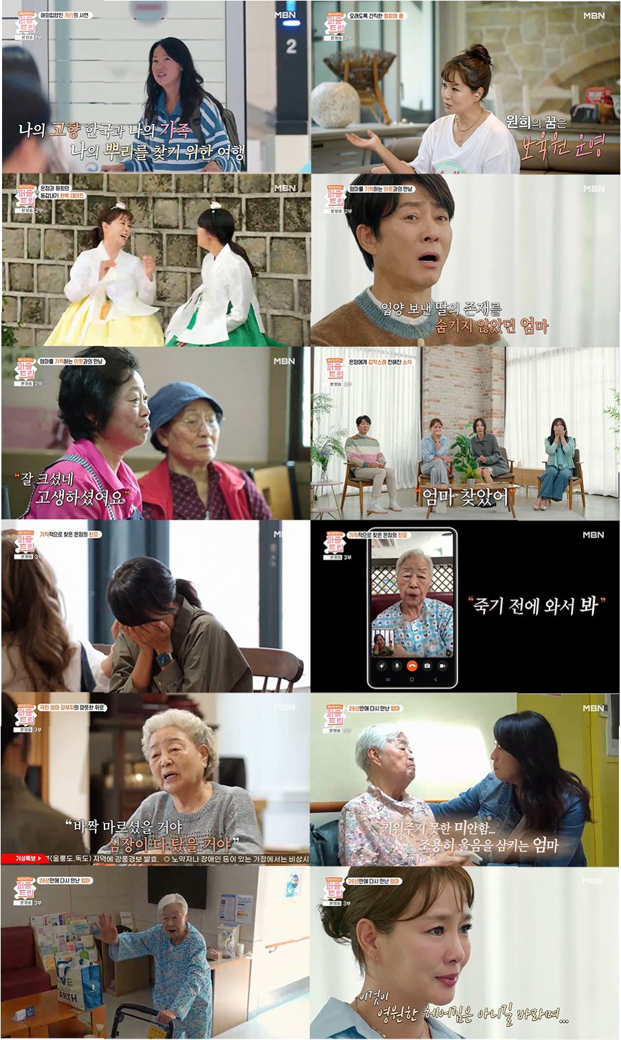 MBN '퍼즐트립'은 잃어버린 퍼즐 조각을 찾아 한국을 방문한 해외 입양인들의 리얼 여행기를 담아냈습니다. 이번 에피소드에서는 6살에 미국으로 입양된 캐리(한국 이름 이은정)가 친어머니를 찾는 여정이 그려졌습니다. 캐리는 사촌 언니를 만나 친어머니에 대한 단서를 찾았고, 제작진의 도움으로 94세의 친어머니와 감격적인 만남을 가졌습니다.