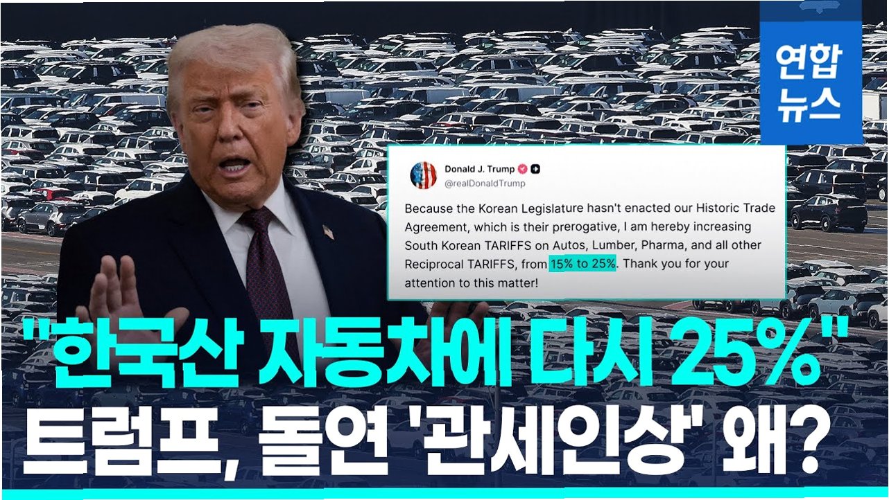 도널드 트럼프 미국 대통령이 전날 발표한 한국산 제품 관세 인상 방침에 대해 "한국과 함께 해결책을 마련할 것"이라고 밝히며 철회 가능성을 시사했습니다. 이는 양국 간 대화를 통해 관세 문제를 조정할 수 있다는 여지를 남긴 것으로 해석됩니다. 트럼프 대통령은 소셜미디어를 통해 한미 무역 합의의 한국 국회 입법 지연을 이유로 관세를 15%에서 25%로 올리겠다고 발표한 바 있습니다.