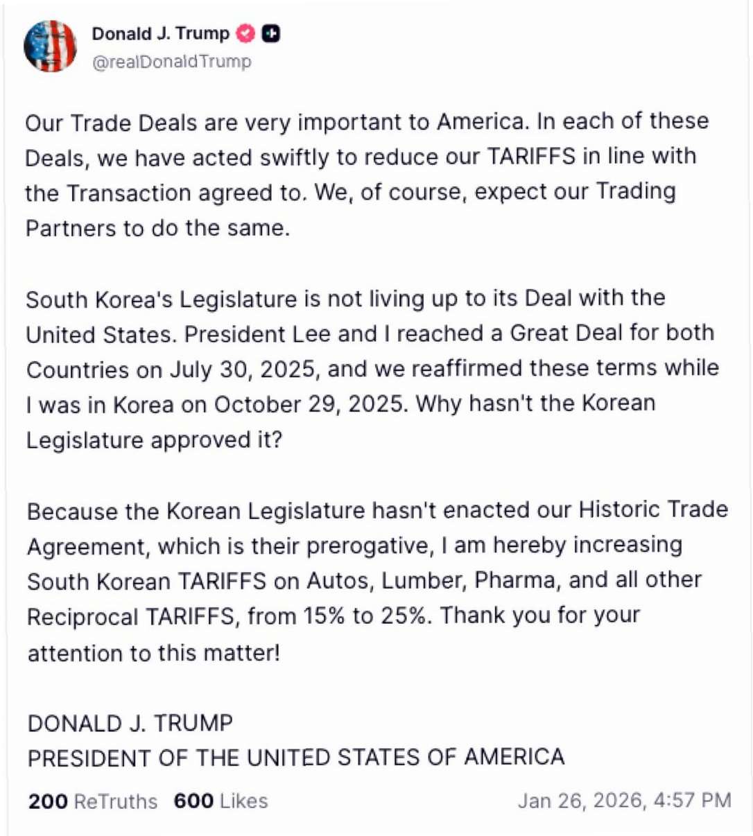 트럼프, 한국산 관세 인상 철회 시사…'협상 모드'로 급선회