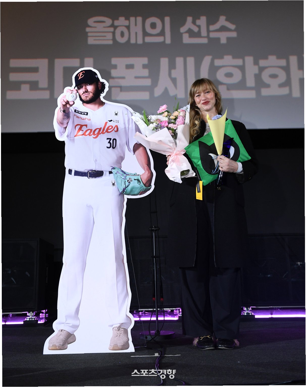 한화 이글스의 에이스였던 코디 폰세가 메이저리그 진출을 위해 미국으로 떠났지만, 그의 아내 엠마는 변함없는 한국 사랑을 보여주며 팬들에게 감동을 선사했습니다. 엠마는 스포츠서울 ‘올해의 상’ 시상식에서 폰세를 대신해 '올해의 선수상'을 수상하며 한화 팬들에게 감사 인사를 전했습니다. 폰세는 11월 말 메이저리그 구단과 계약을 위해 홀로 미국으로 출국하여 시상식에 참석하지 못했지만, 엠마와 갓 태어난 딸은 한국에 남아 폰세를 향한 굳건한 사랑을 표현했습니다.
