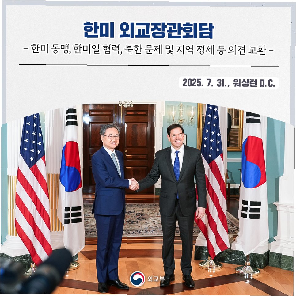 한미 외교 수장이 워싱턴에서 만나 팩트시트 후속 조치 이행을 가속화하고, 원자력 협력, 핵추진 잠수함 도입, 관세 문제 등 양국 간 주요 현안을 포괄적으로 논의합니다. 또한, 조 장관은 핵심광물 공급망 안정화 논의에도 참여합니다.