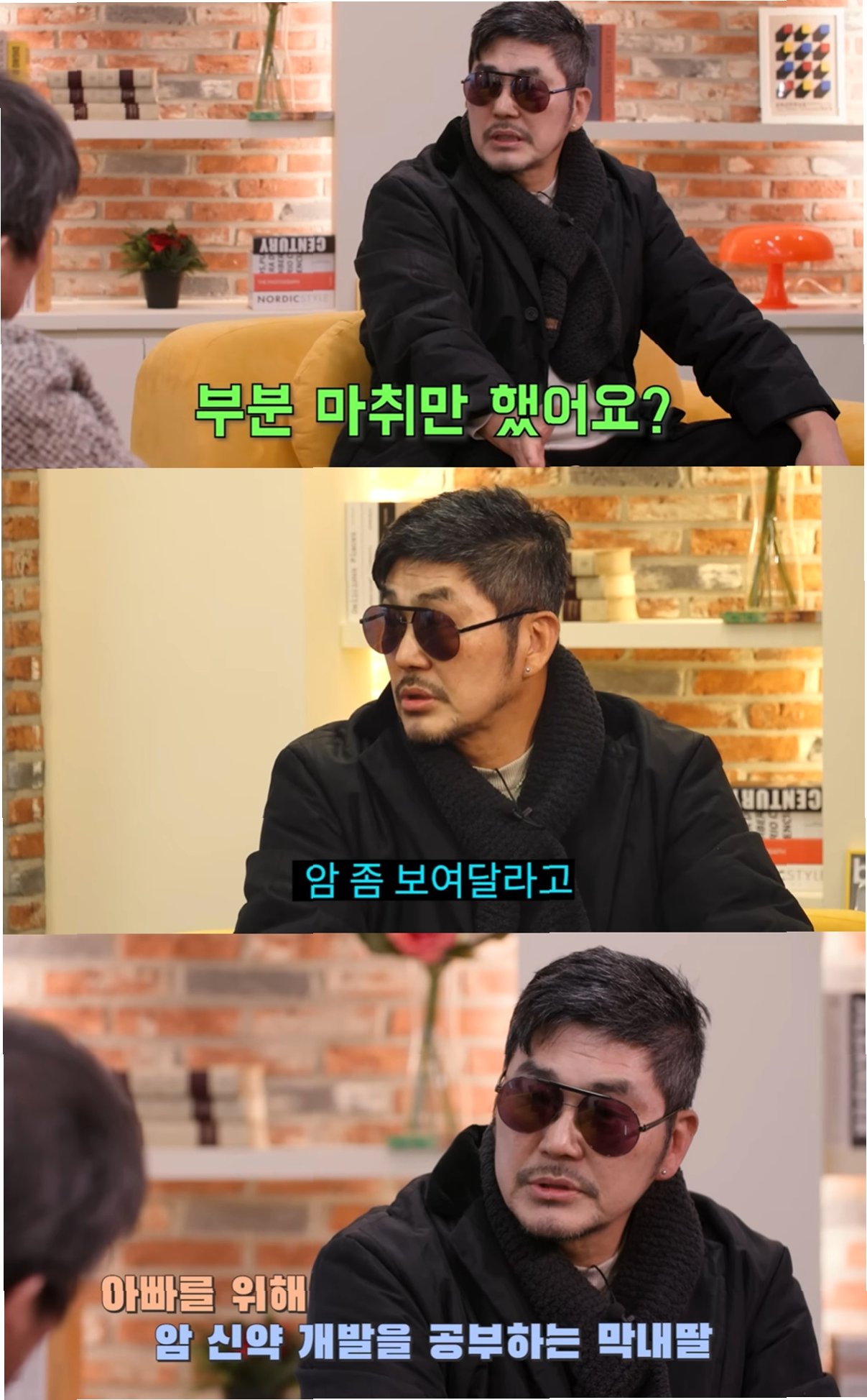 김영호 씨는 수술 과정을 직접 보기 위해 부분 마취만 감행하는 극한의 선택을 하기도 했습니다. 그는 "너무 아파서 땀으로 다 젖었고, 직접 암을 봤을 때 정말 더럽게 생겼다는 생각이 들었다"고 당시의 충격적인 경험을 생생하게 전했습니다. 암 진단을 받았을 때 "아, 난 죽는다. 왜 이렇게 열심히 살았나"라는 복잡한 감정들이 휘몰아쳤다고 고백하며, 삶의 의미를 되돌아보게 되었다고 밝혔습니다.