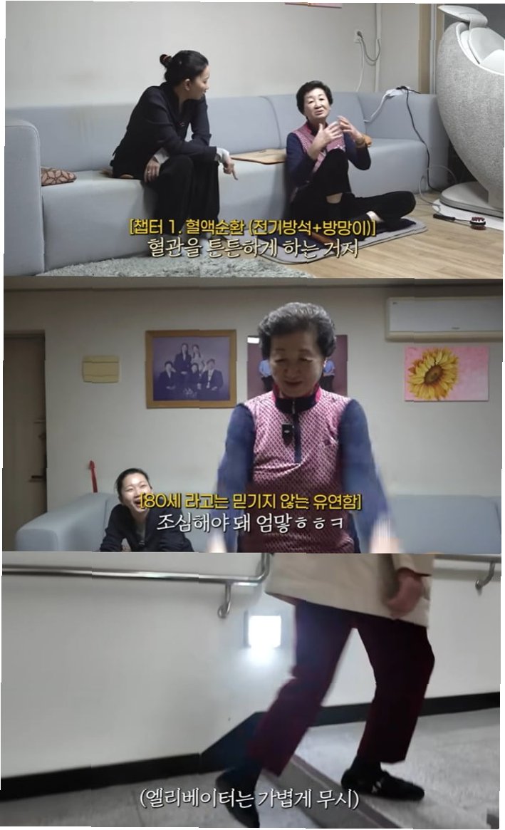 80세에도 놀라운 유연성을 유지하는 장윤주 어머니